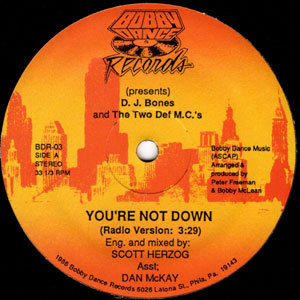 | | D.J. Bones Featuring The Two Def M.C.'s You're Not Down US BOBBY DANCE 12 inch - £12 Strict VG / Check Clip from this copy