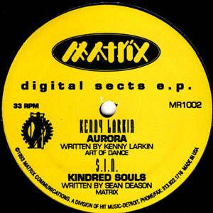 | | Kenny Larkin / DJ T-1000 / Sergio / S.I.N. Aurora / The Menacer / Kindred Souls / Disko Gruv US MATRIX 12 inch - £30 Nr. Mint / Check clip from this copy / barely played but hear a few soft clicks from pressing