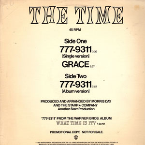 | | The Time 777-9311 / Grace US WARNER BROS 12 inch Promo with Titled sleeve - £30 Strict VG / Check clip from this copy / small writing on sleeve