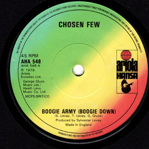 | | Chosen Few Boogie Army (Boogie Down) / Sweet Nothings UK ARIOLA HANSA 7 inch - £4 Nr. Mint
