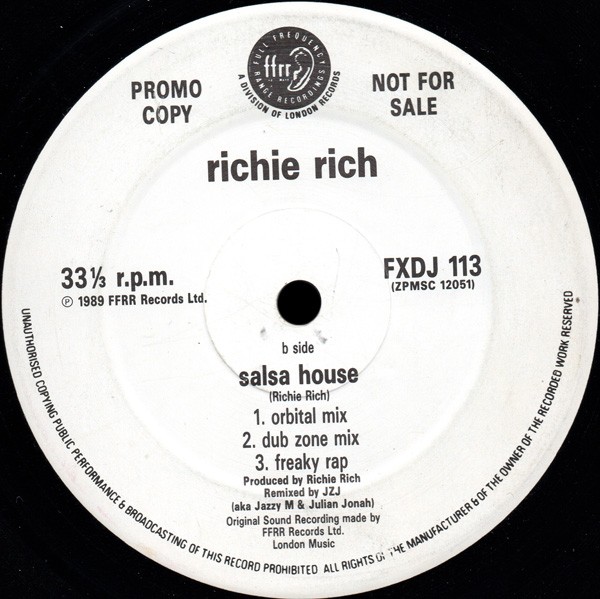 | | Richie Rich Salsa House (5 Versions) UK FFRR 12 inch Promo in Company Sleeve - £10 Strict VG / check clip from this copy